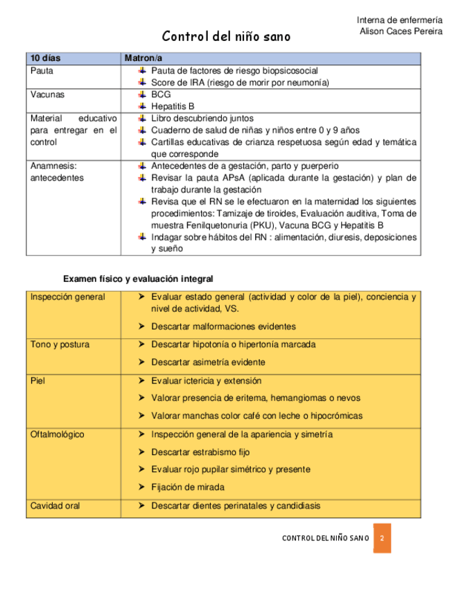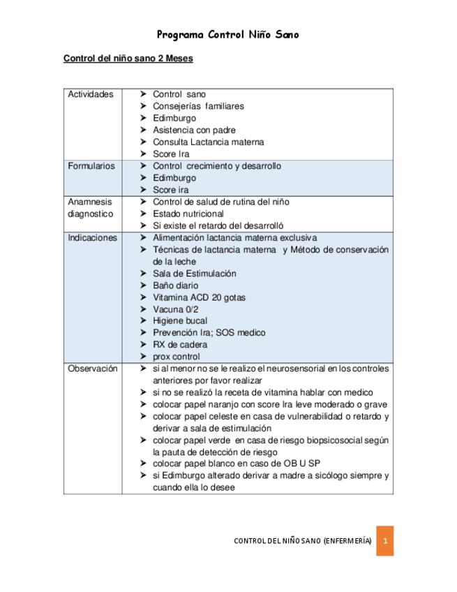 Que profesional debe realizar el control - Vacunas que deben ser administradas al menor - Material educativo que se debe entregar - Anamnesis y antecedentes - Examen fisico y evaluacion integral - Banderas rojas