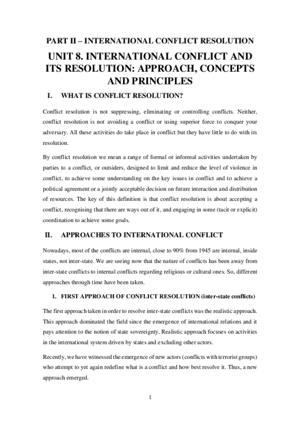 International Conflict, Conflict Resolution and Peacemaking