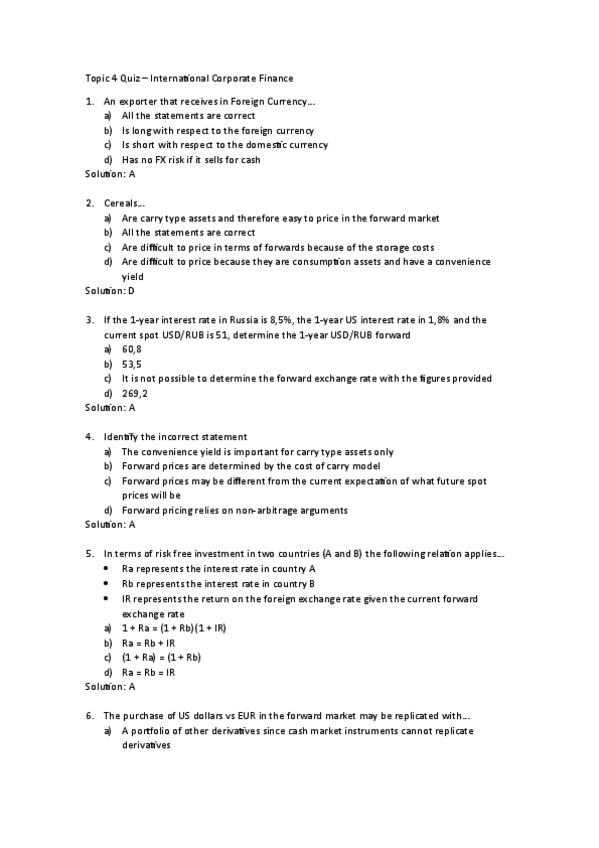 He publicado nuevos test de 3º International Corporate Finance: Topic-4-Quiz.pdf