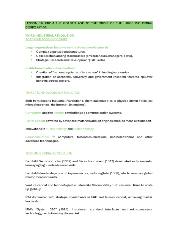Notes from all lessons of International Economic and Business History I (1st Term) + CHRONOLOGY of all lessons, really useful to study