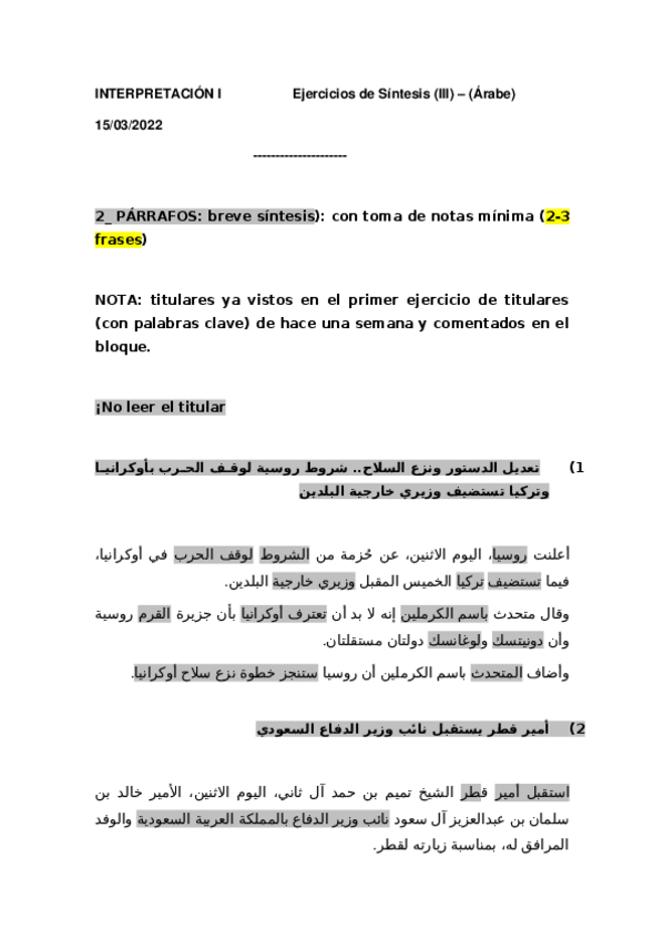 He publicado nuevos apuntes de 3º Interpretación 1 Árabe: SÍNTESIS