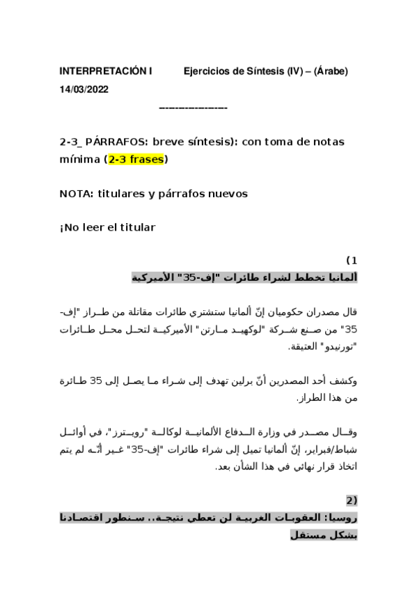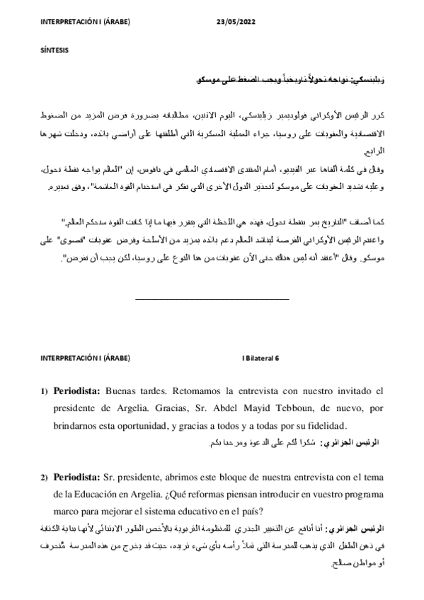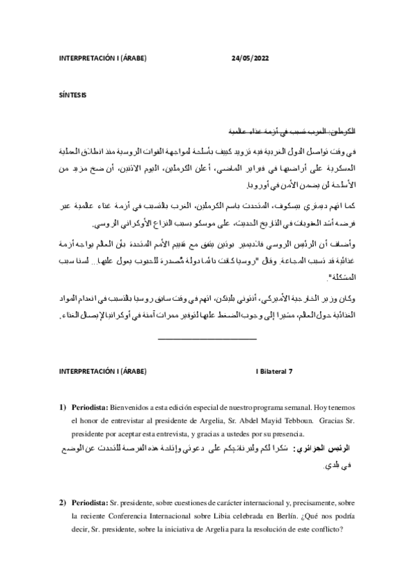He publicado nuevos apuntes de 3º Interpretación 1 Árabe: BILATERAL