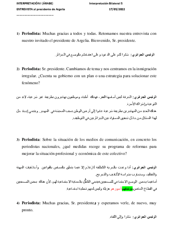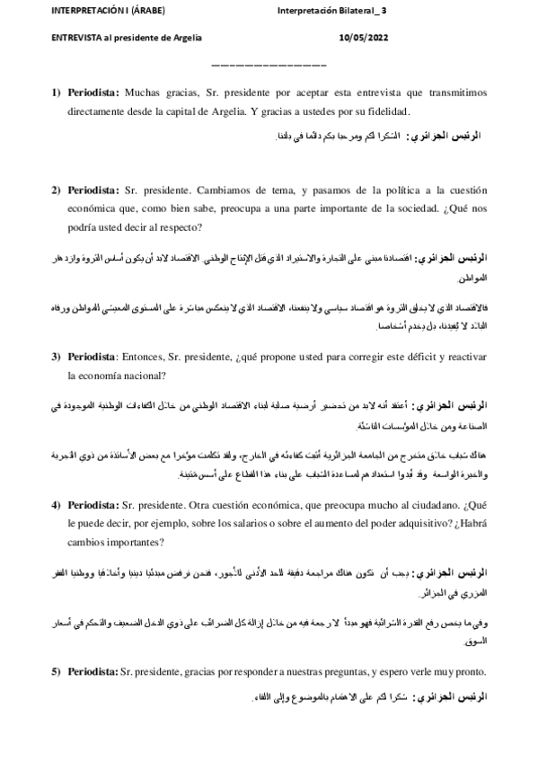 Interpretación 1 Árabe