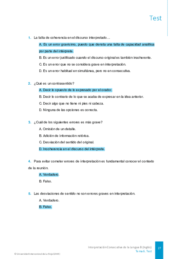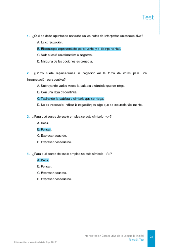 He publicado nuevos test de 3º Interpretación Consecutiva de la Lengua B (Inglés): TESTS