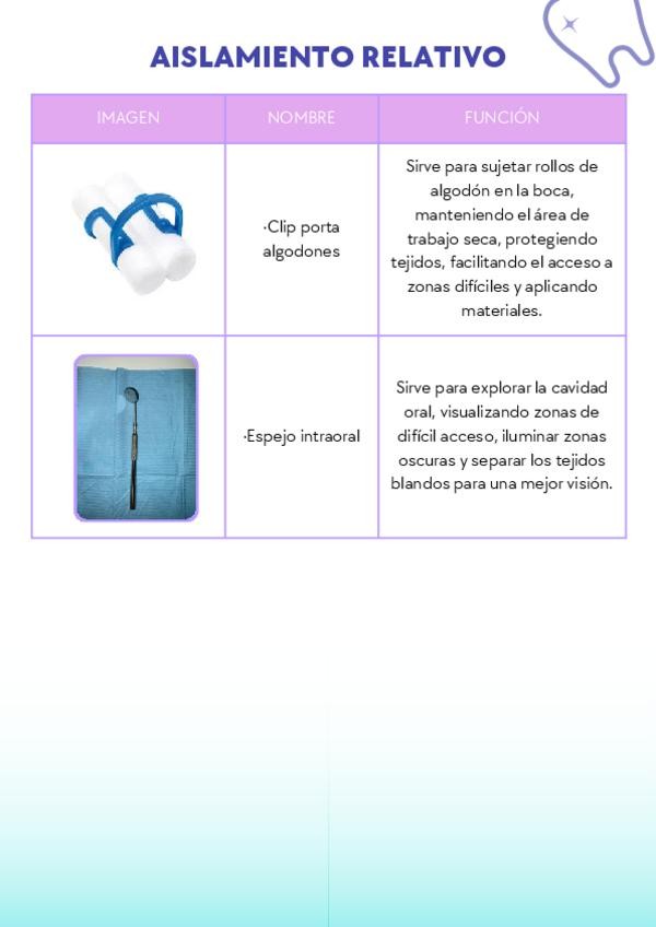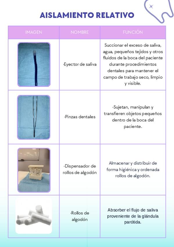 Materiales e instrumental empleado en el aislamiento relativo/absoluto y aplicación de sellado de fosas y fisuras.