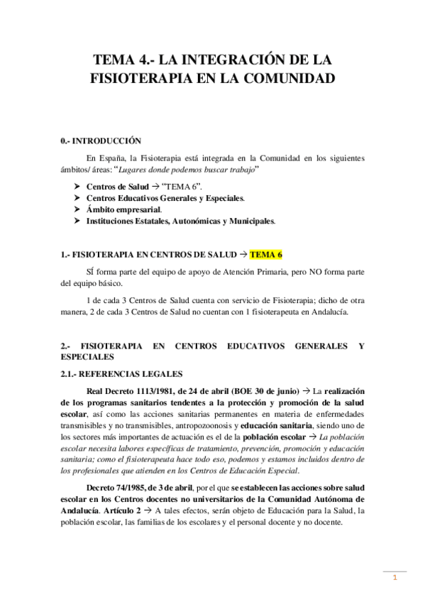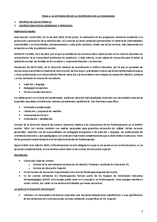 Contiene apuntes sobre la parte de gestión e intervención comunitaria en fisioterapia (no sobre legislación)