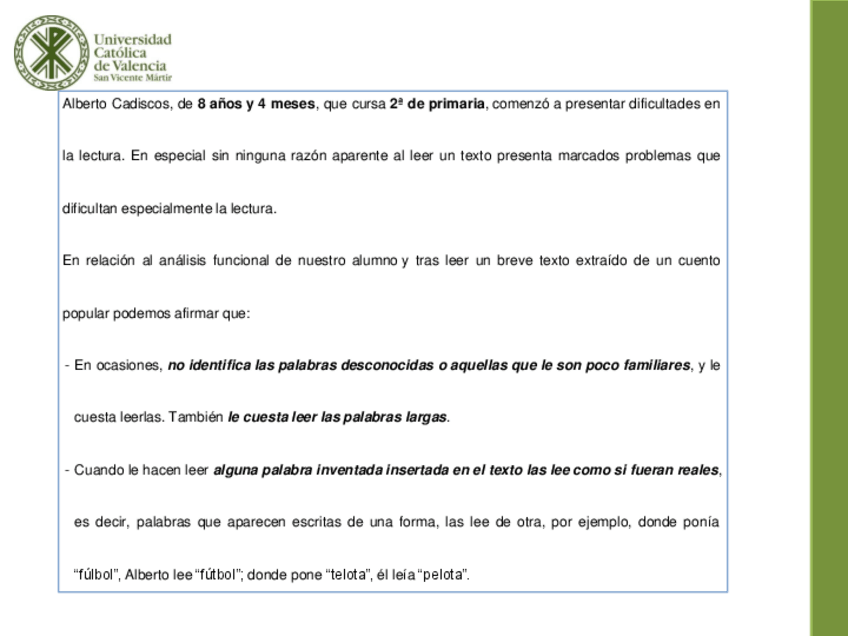 He publicado nuevos ejercicios de 4º Intervención educativa en dificultades específicas de aprendizaje: Actividad-2.-Caso-Dislexia.pdf
