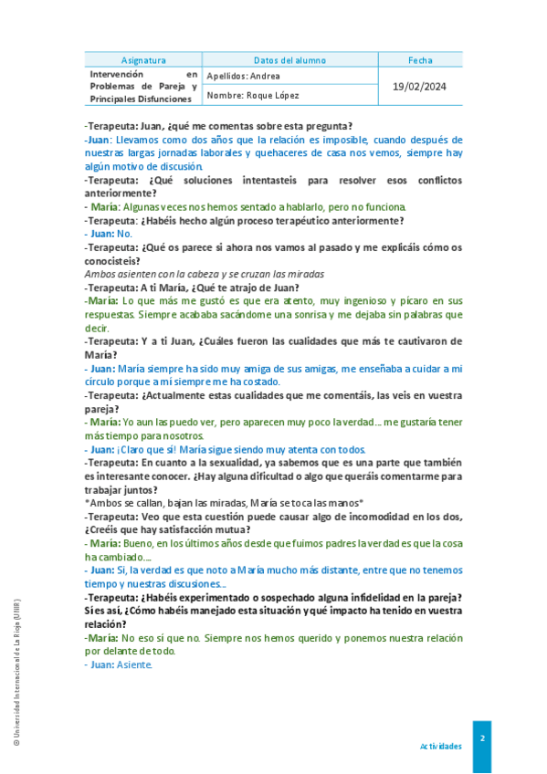 He publicado nuevos apuntes de 1º Intervención en Problemas de Pareja y Principales Disfunciones: Actividad-1.-Parejas.pdf
