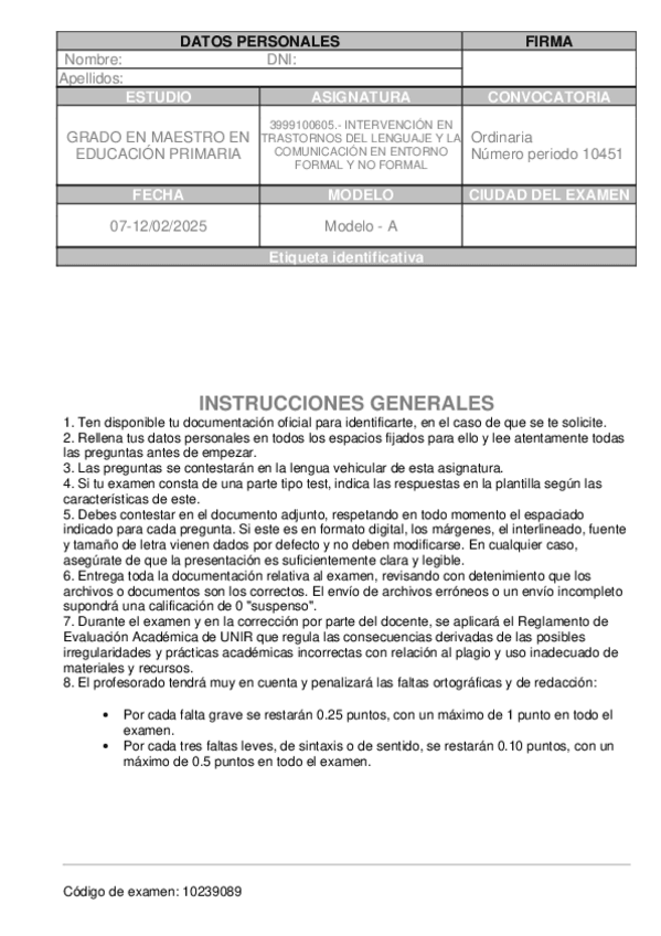 He publicado nuevos examenes de 4º Intervención en Trastornos del Lenguaje y la Comunicación en Entorno Formal y no Formal: Preguntas-Examen.pdf