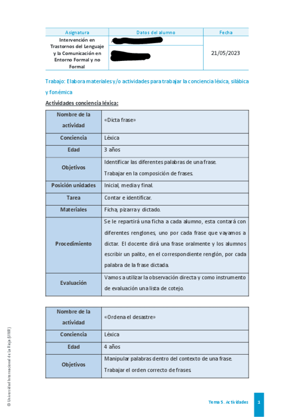 He publicado nuevos trabajos de 4º Intervención en Trastornos del Lenguaje y la Comunicación en Entorno Formal y no Formal: Actividad-3-Nota-10.pdf