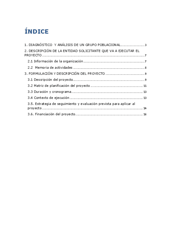 Relizar un proyecto de intervención. Completo y en castellano. Trabajo de campo.