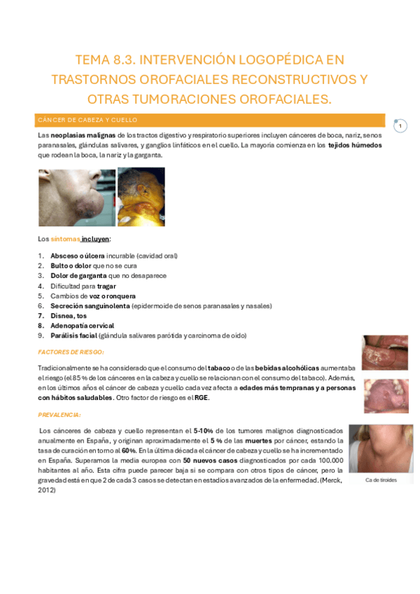 He publicado nuevos apuntes de 3º Intervención Logopédica en los Trastornos Estructurales de las Funciones Orofaciales: tema-8.3.-tumores.pdf