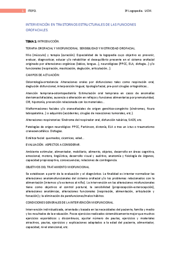 He publicado nuevos apuntes de 3º Intervención Logopédica en los Trastornos Estructurales de las Funciones Orofaciales: 1.pdf