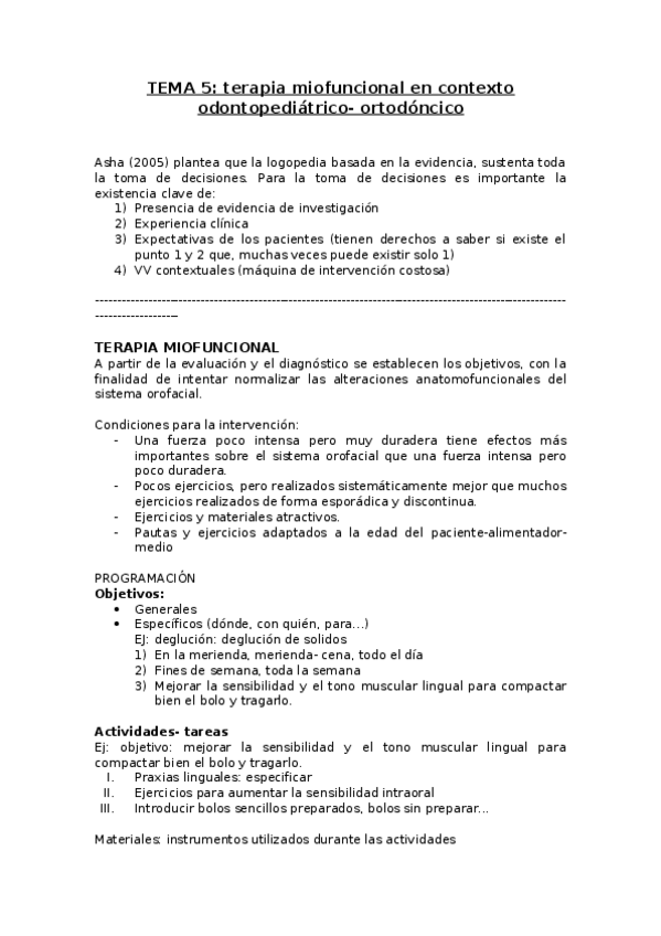 He publicado nuevos apuntes de 3º Intervención Logopédica en los Trastornos Estructurales de las Funciones Orofaciales: Tema-6.-Terapia-miofuncional-en-contexto-odontopediatrico-ortodoncico.pdf