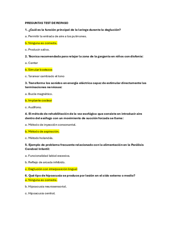 He publicado nuevos examenes de 3º Intervención logopédica en trastornos de habla, voz y audición: Preguntas-test-de-clase.pdf