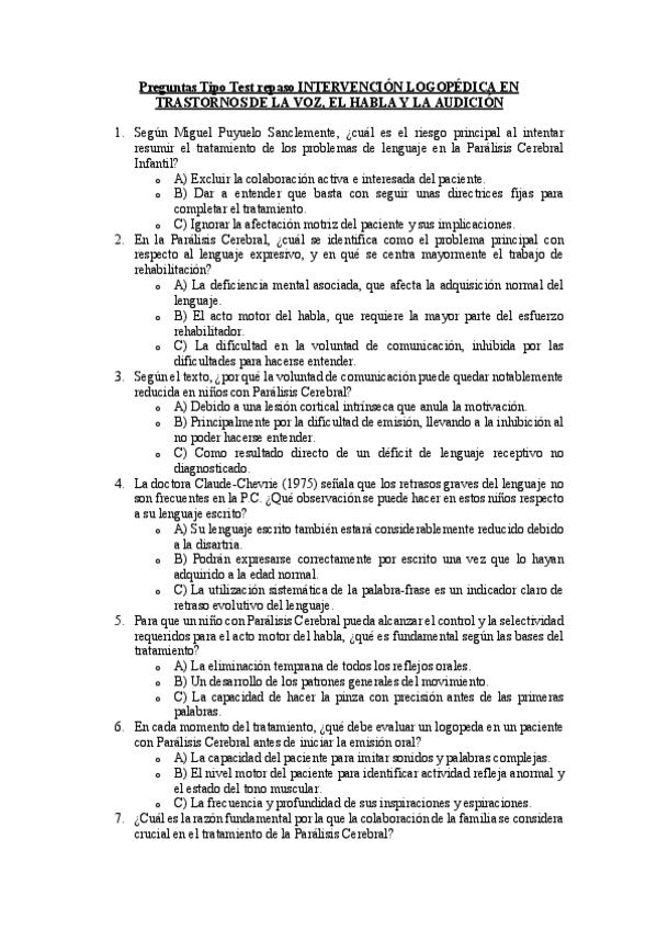 He publicado nuevos examenes de 3º Intervención Logopédica en Trastornos del Habla, la Voz y Audición: CUESTIONARIOS.pdf