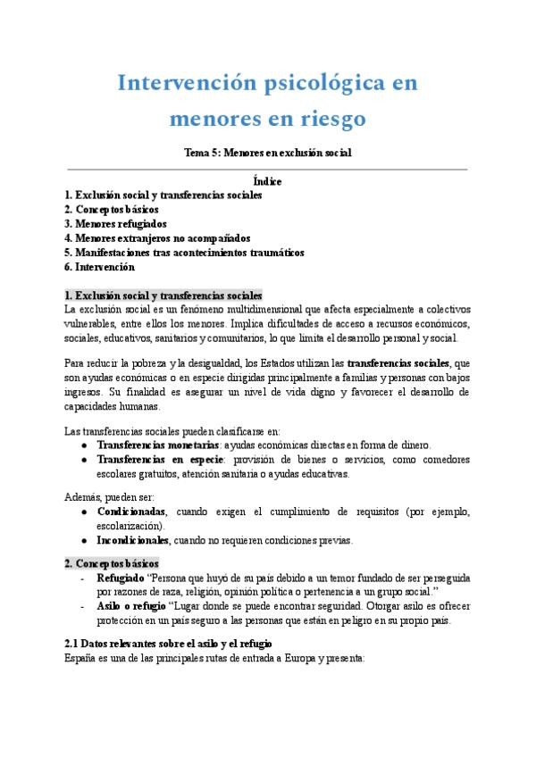 He publicado nuevos apuntes de 4º Intervención Psicológica en Menores en Riesgo: Tema 1.apuntes.docx