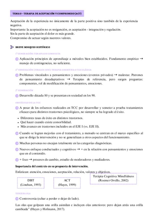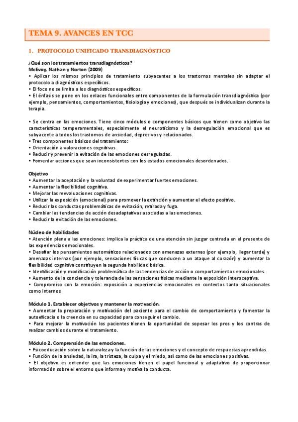 Apuntes completos del Tema 9.1 de Intervención y Tratamientos Psicológicos con la profesora Verónica Guillen