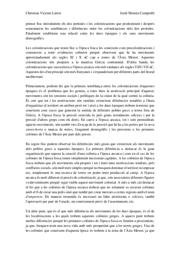 Comentario en catalán sobre la colonización griega, son preguntas con respuestas extensas.