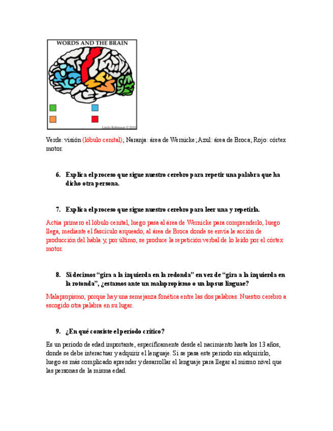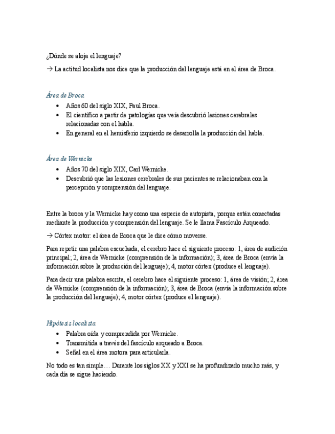 Temas: Neurolingüística, Áreas cerebrales implicadas en el lenguaje, Trastornos específicos del lenguaje; La Adquisición del Lenguaje, Teorías lingüísticas, Innatismo vs Conductismo; Origen y Ev. del lenguaje, Factores del aparición del lenguaje, Teorías