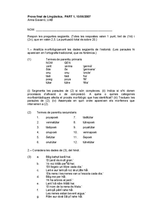 He publicado nuevos examenes de 1º Introducció a la Lingüística: Exemples Exàmens