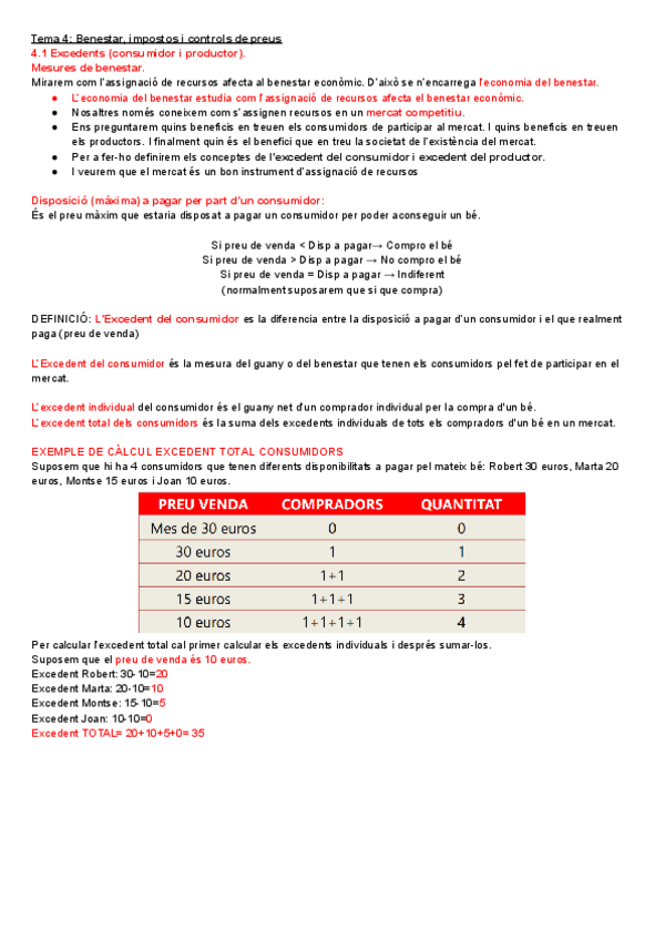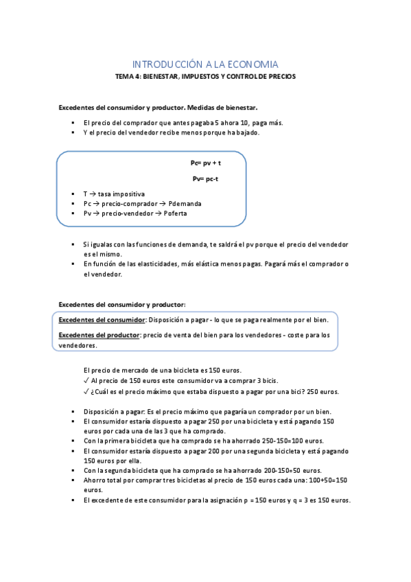 Apunts complets Tema 4 (Benestar, impostos i controls de preus), Introducció a l'economia. Any 2024-2025.