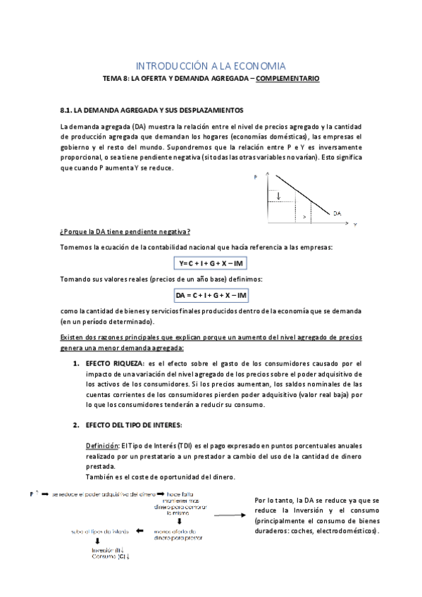 Apunts Tema 8 complets. DEMANDA Y OFERTA AGREGADA. Any 2024-2025