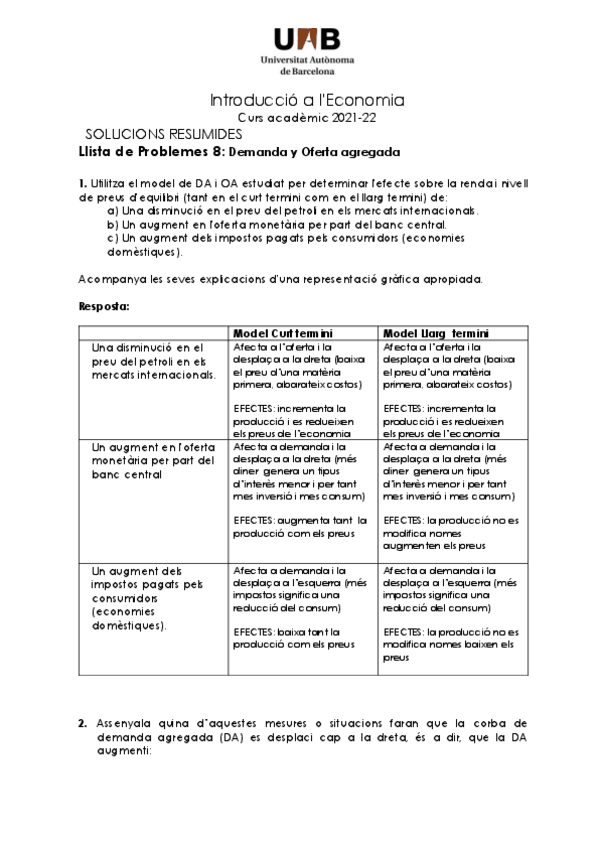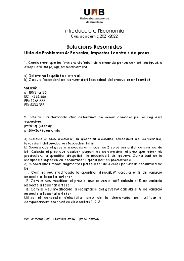 Llista de problemes TEMA 3, Introducció a l'economia