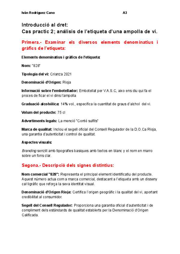 Primer Cas Pràctic de l'assignatura Introducció al dret de l'empresa