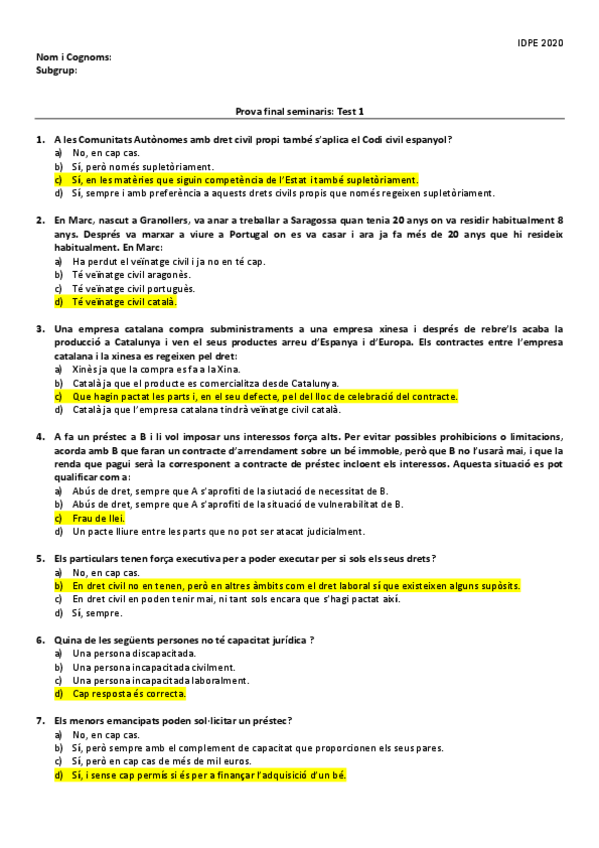 He publicado nuevos apuntes de 1º Introducció al Dret Privat i de l'Empresa I: Examen tipo test del ultimo semi