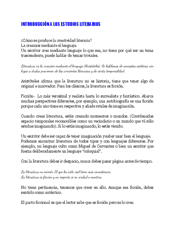 Apuntes extensos de introducción a los estudios literarios, con poemas analizados y todo lo ue nos dijo que era importante