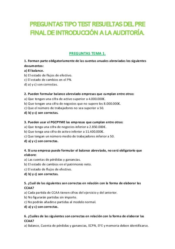 He publicado nuevos examenes de 3º Introducción a la Auditoría: PREGUNTAS-PREFINAL-DE-AUDITORIA.pdf