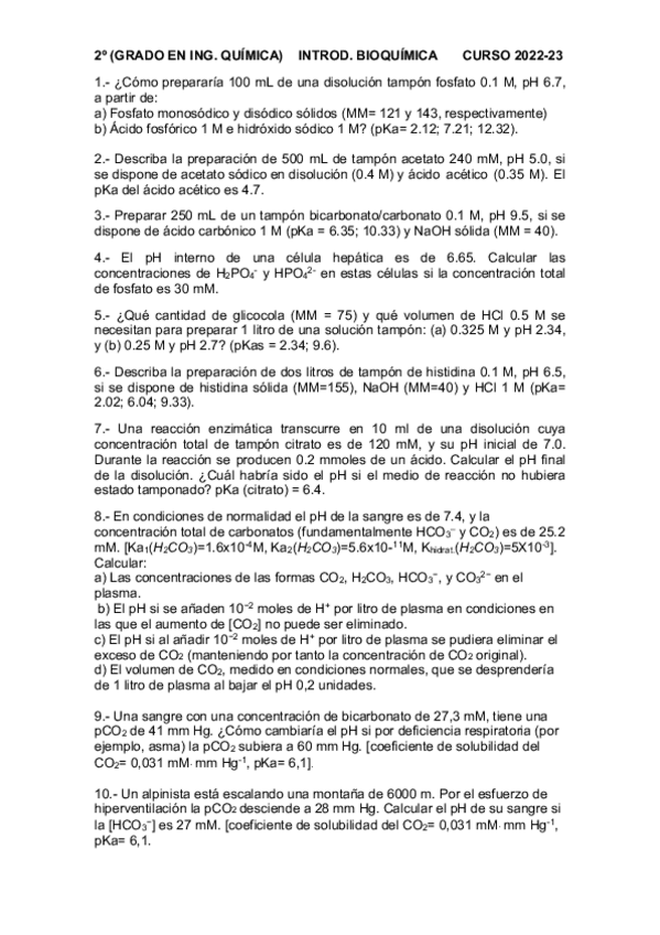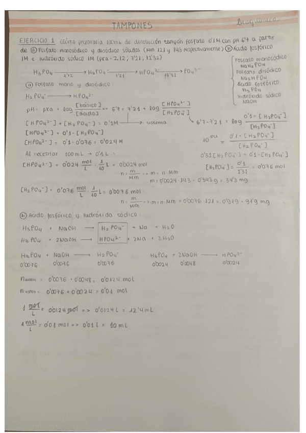 BIOQUÍMICA Ejercicios y Apuntes