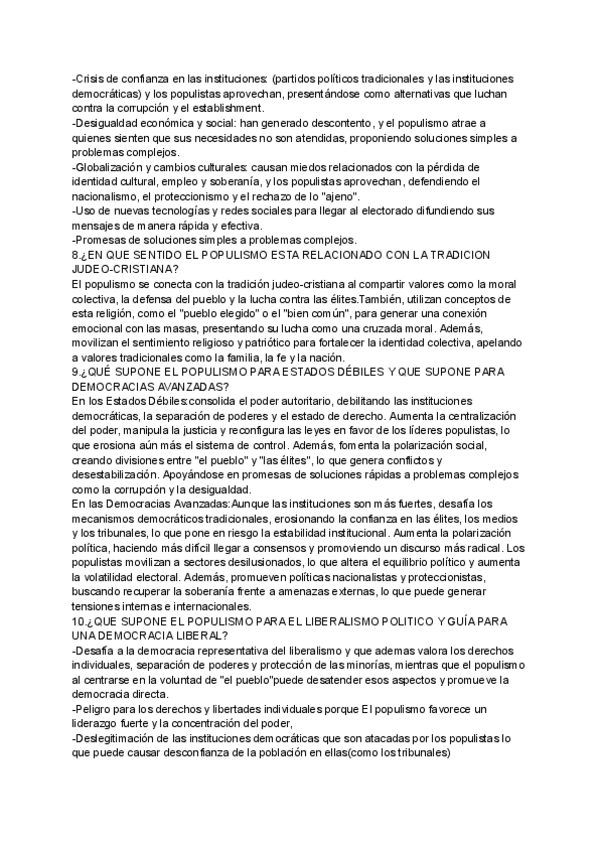 TODAS LAS RESPUESTAS RESUMIDAS A LAS PREGUNTAS DEL TEMA 1 DEL POPULISMO