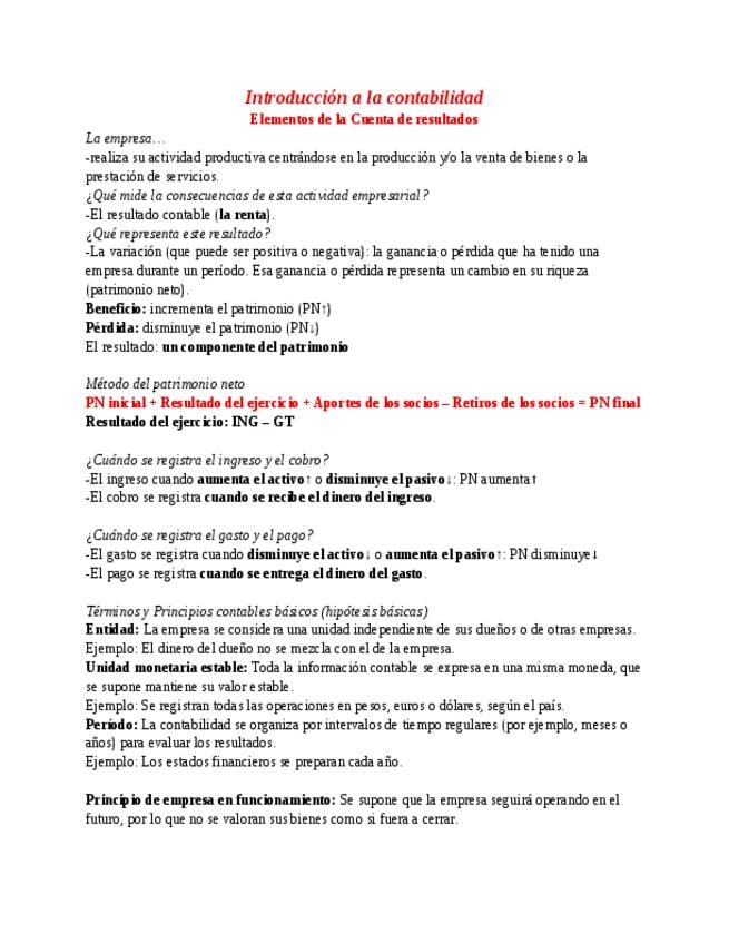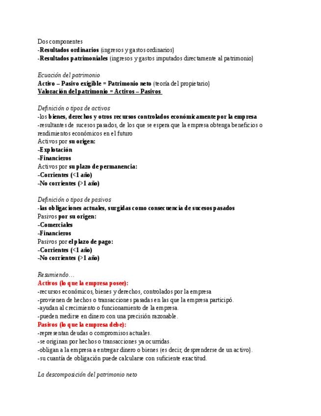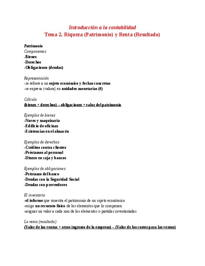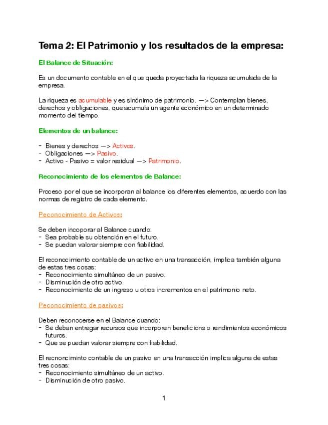 Apuntes del Tema 2 de Introducción a la Contabilidad: El Patrimonio y los resultados de la empresa.