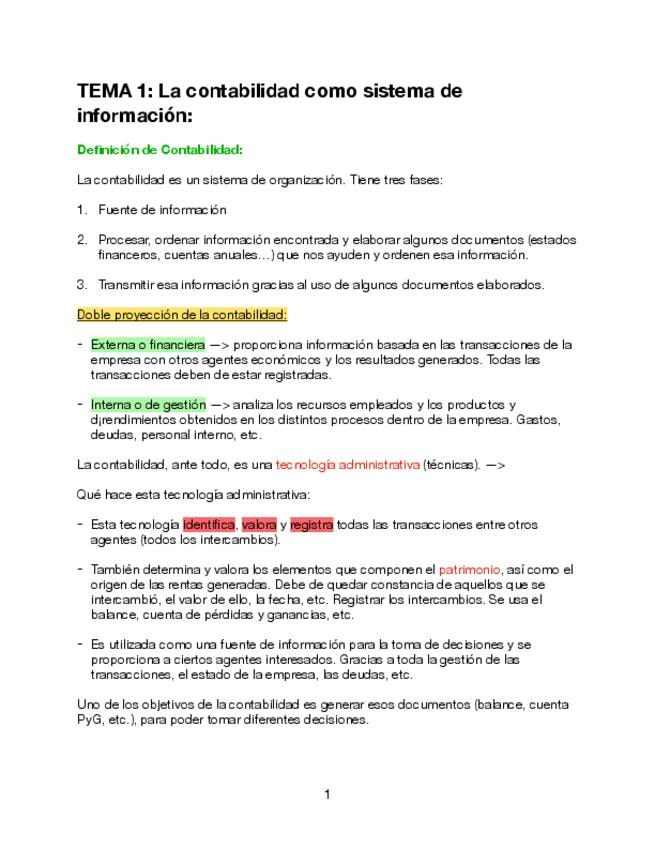 Tema 1 Introducción a la Contabilidad: La Contabilidad como sistema de información. - Tipos de Contabilidad. - Marco Conceptual. - Plan General Contable. - Cuentas Anuales. - Principios Contables. - Etc.
