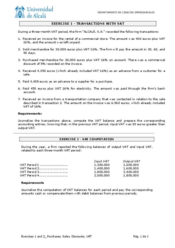 He publicado nuevos apuntes de 1º Introducción a la Contabilidad: TOPIC-6-Exercises-VAT.pdf
