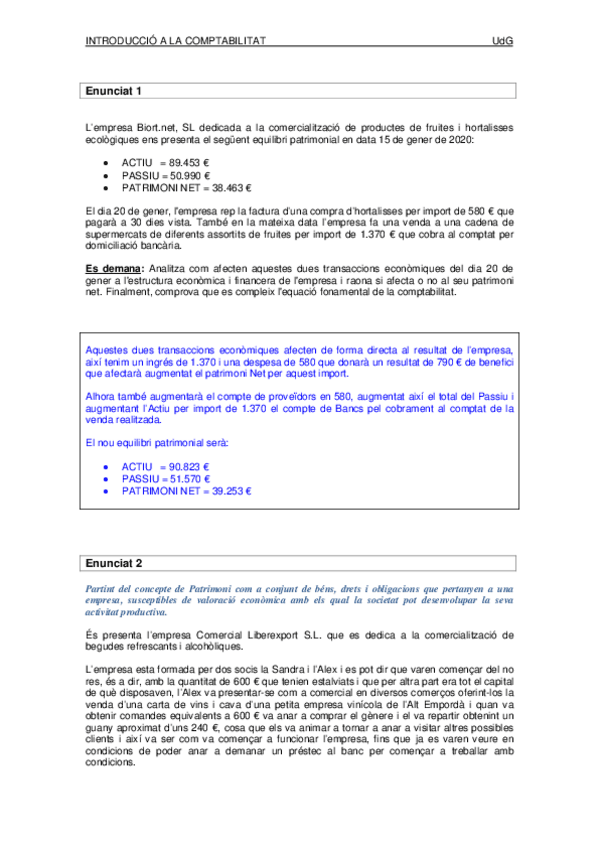 Exercicis BLOC I. Teoria de l'estructura patrimonial