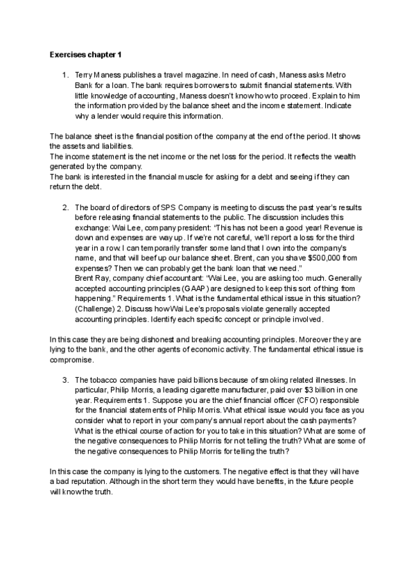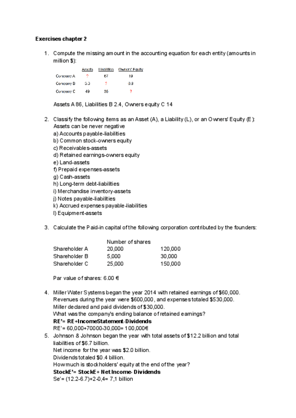 Exercises intro to accounting