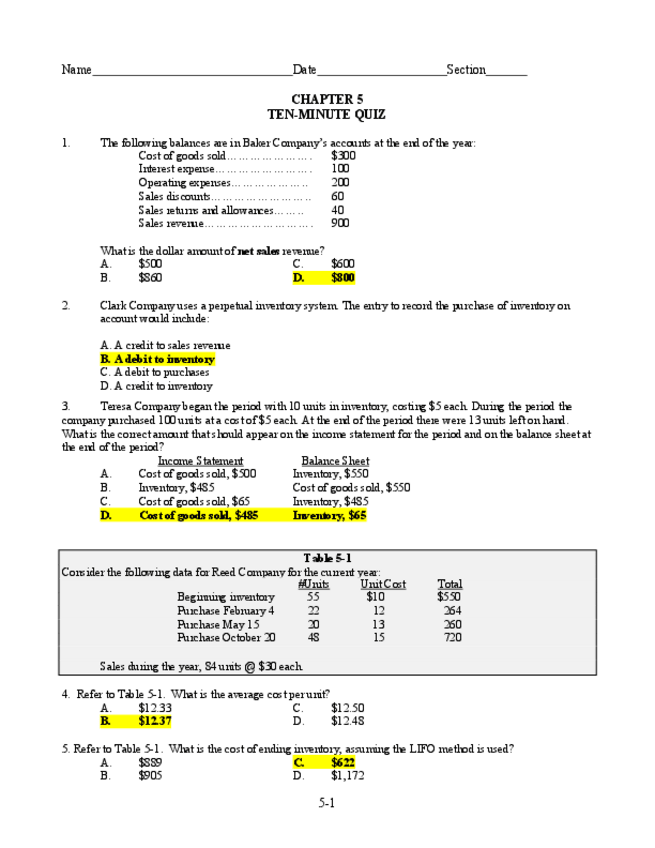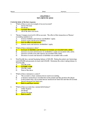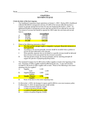 Ten minutes quizzes and exam questions