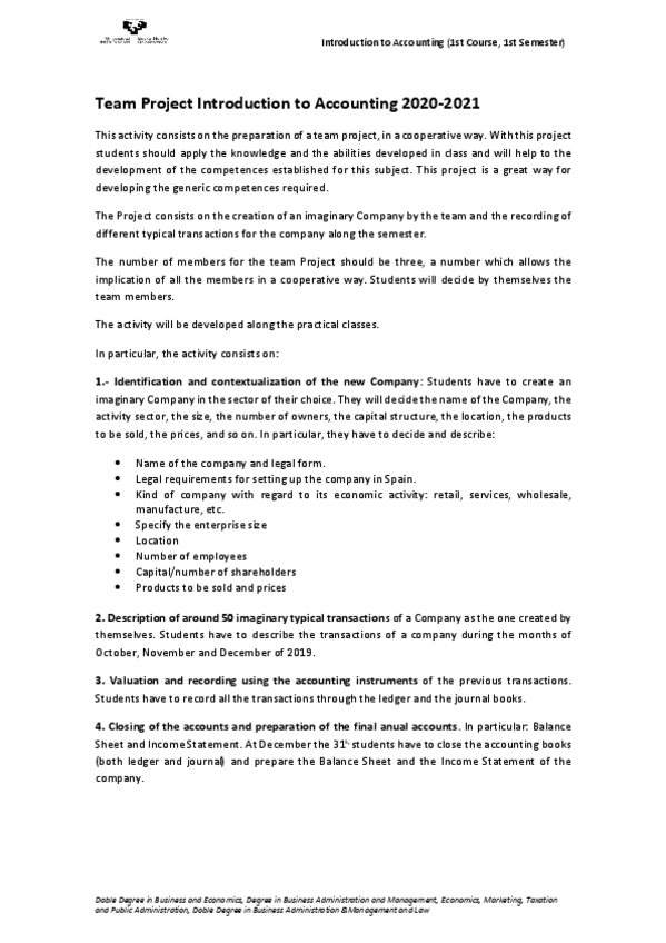 He publicado nuevos ejercicios de 1º Introducción a la Contabilidad: Team-project-Introduction-to-accounting-2020-2021.pdf