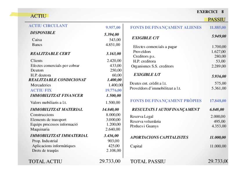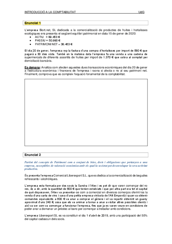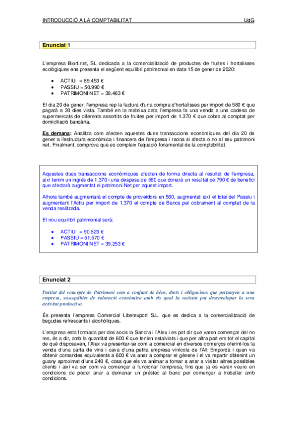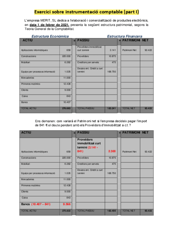 Exercicis BLOC I. Teoria de l'estructura patrimonial