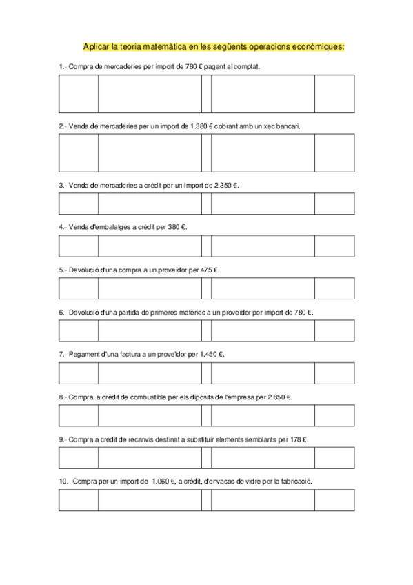 Exercicis BLOC III. Operacions empresarials i el cicle comptable
