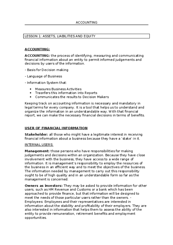 He publicado nuevos apuntes de 1º Introducción a la Contabilidad: ACCOUNTING
