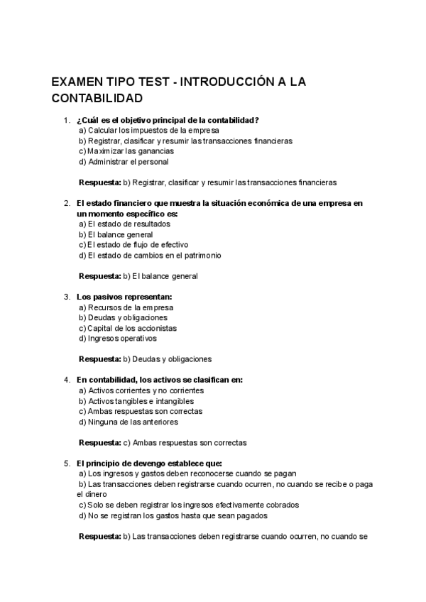 Tests y ejercicios del libro de contabilidad (con respuestas y en inglés)