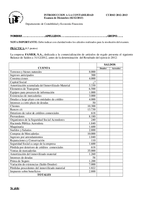 He publicado nuevos examenes de 2º Introducción a la Contabilidad: EXAMEN