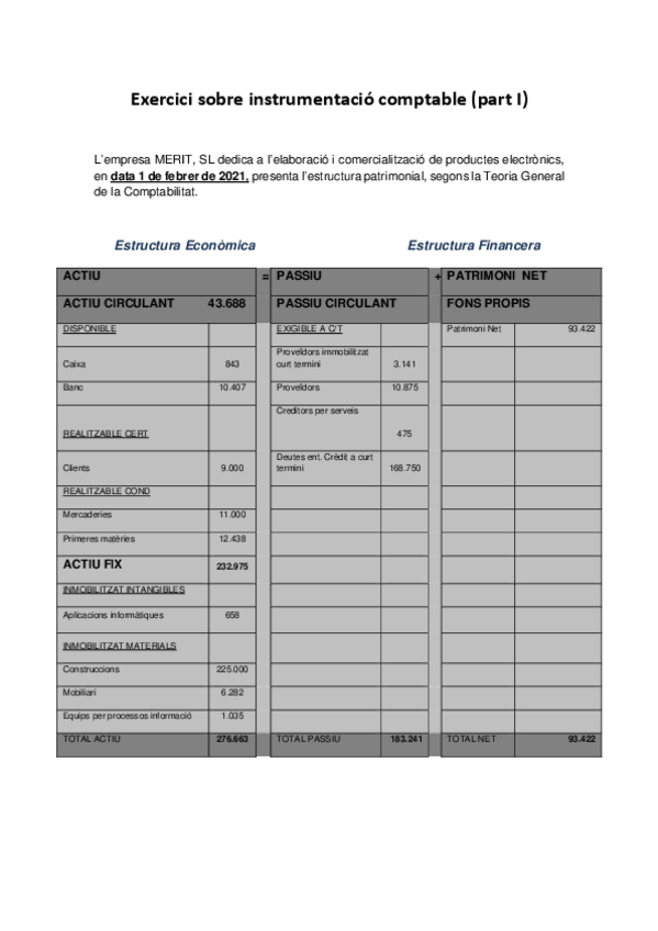 Exercicis BLOC I. Teoria de l'estructura patrimonial
