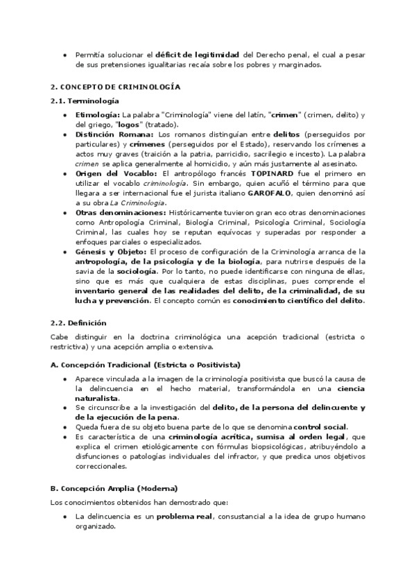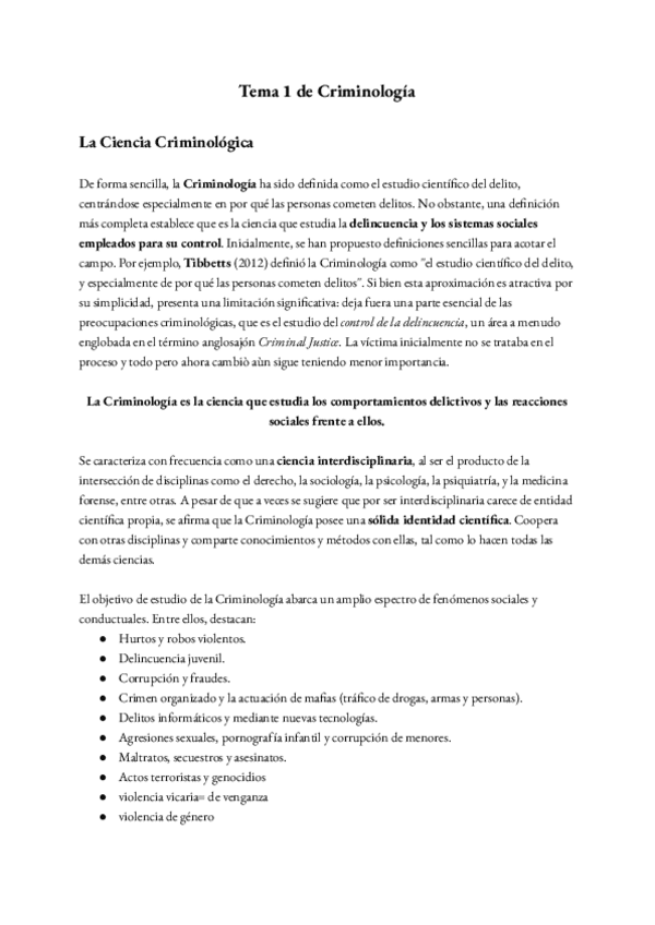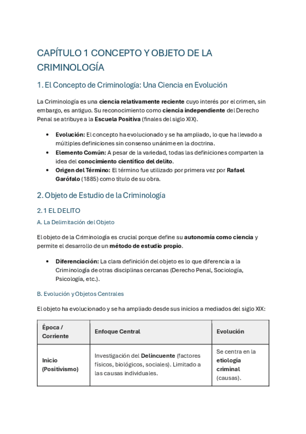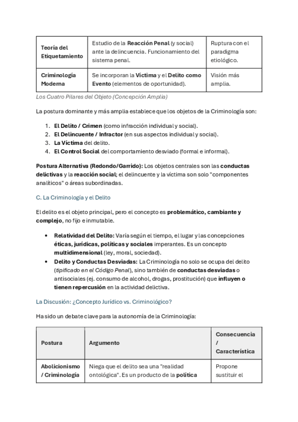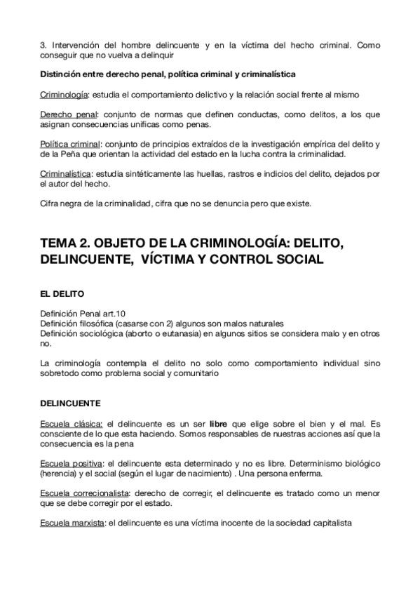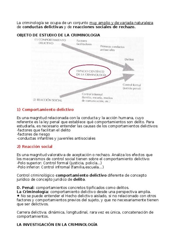 resumen explicativo del tema 1 : concepto y objeto de la criminologia