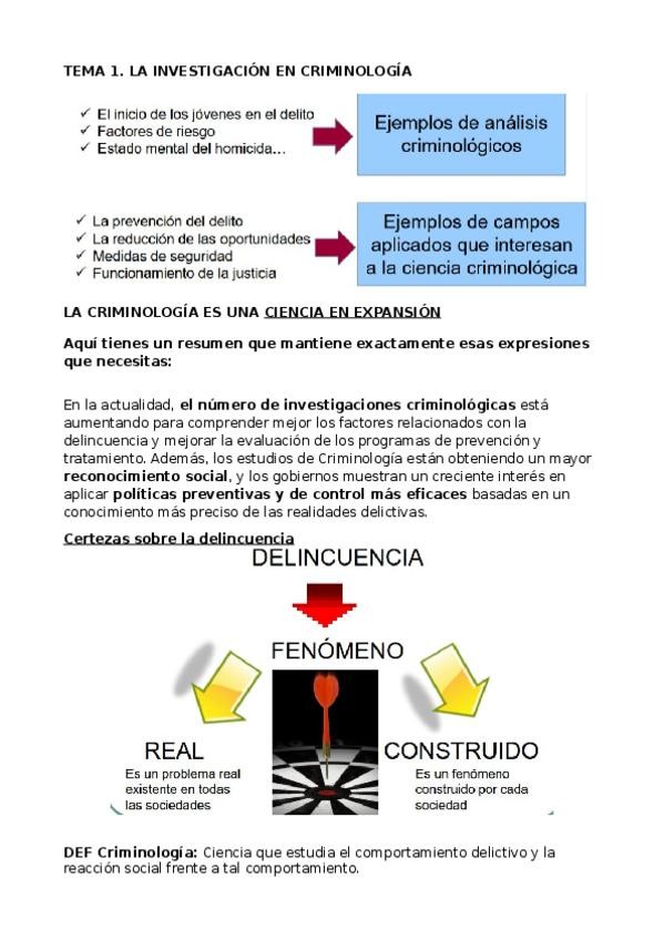 Resumen 1er tema de Criminología PENAL, completo de manera resumida y sencilla de entender.