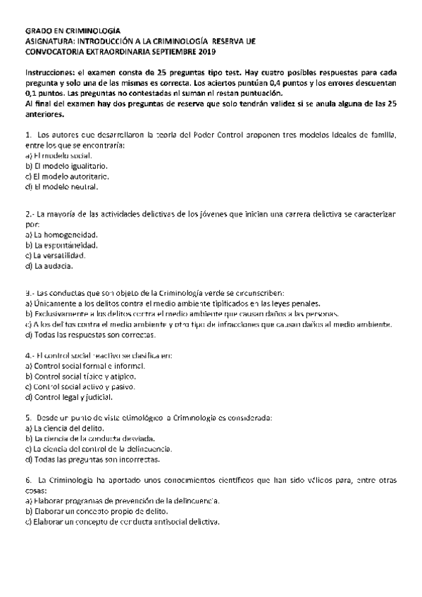 Exámenes y respuestas I. Criminología